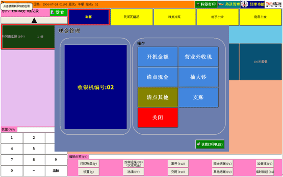 完善的現金管理功能:包括開機金額錄入、清點現金、清點其他憑證(信用卡底單、贈券等)、抽大鈔等等功能。